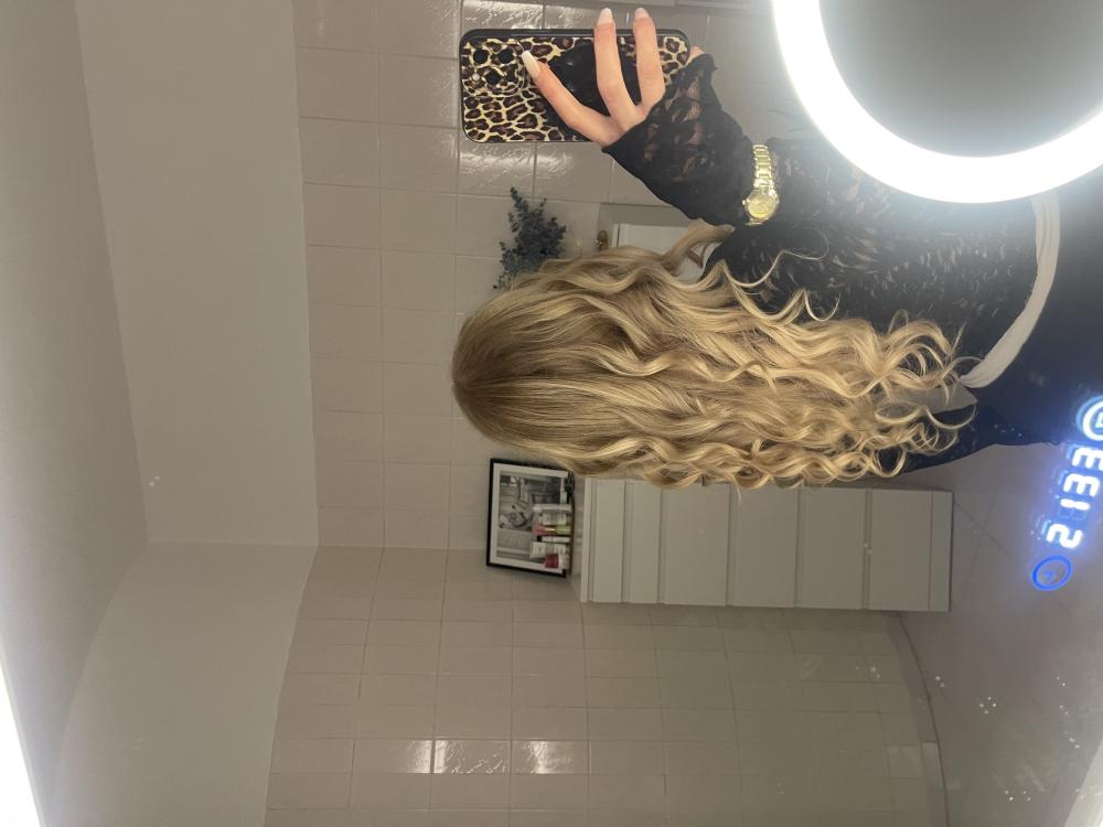 Clip-In Extensions Set NATURAL Original SeidenglattBin sehr zufrieden,man merkt kein Unterschied zu eigenen Haar. Auch Preis Leistung ist Top für echt Haar.