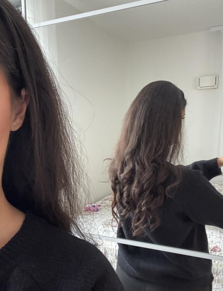 Zu den Haaren selbst: Ja, im ungewaschenen Zustand wirken sie zunächst sehr fein und unten etwas dünner. Nach dem ersten Waschen plustern sie sich jedoch deutlich auf. Außerdem sollte man bedenken: Wer nur das kleine Set bestellt, kann keine extreme Verlängerung erwarten – für mehr Länge benötigt man natürlich mehr Gramm.